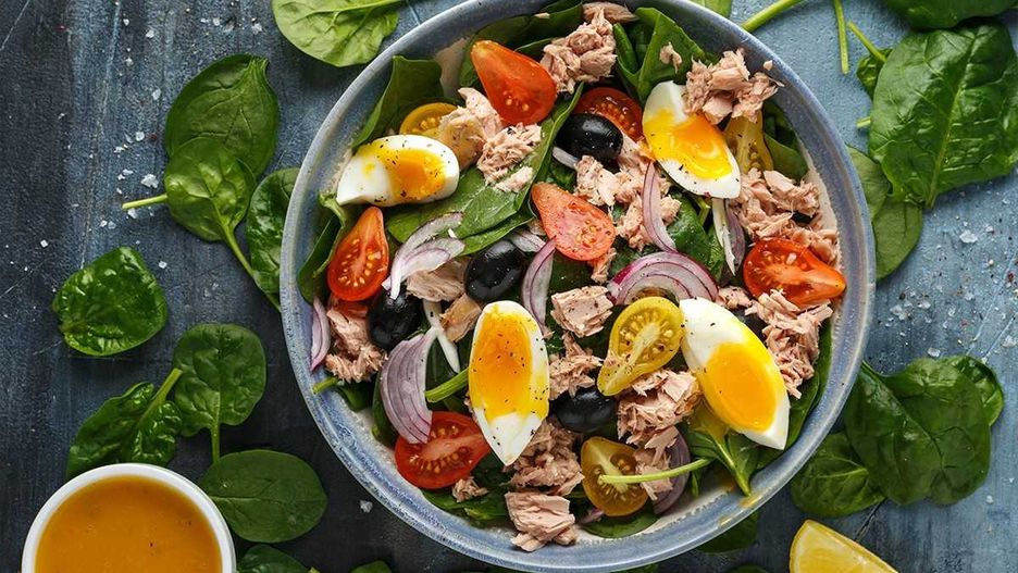 Sałatka z tuńczykiem, jajkiem i oliwkami