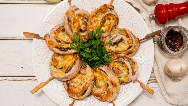 Nie masz pomysłu na ciekawe wykorzystanie schabu w swojej kuchni? Zrób smaczne zawijańce ze sprawdzonymi dodatkami. Schab po kozacku, który wygląda jak mięsne lizaki, skrywa w sobie wędzony ser, pieczarki, a także boczek. Ciekawa forma podania sprawia, że to przepis dobry na imprezę w domu czy inne specjalne okoliczności. Listę składników znajdziesz poniżej. Instrukcja krok po kroku czeka w naszym wideo.
