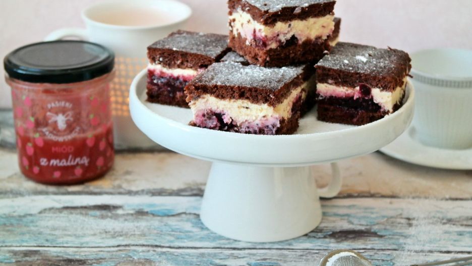 Przepyszna masa serowa, ciasto czekoladowe i kwaskowaty dżem porzeczkowy to idealne zestawienie. Ciasto sprawdzi się na co dzień i od święta. Ten deser można również przygotować bez pieczenia - zamiast czekoladowych blatów, wystarczy użyć trzech warstw herbatników. Przepis poleca Wiola, autorka bloga "Gotuj i mieszkaj".