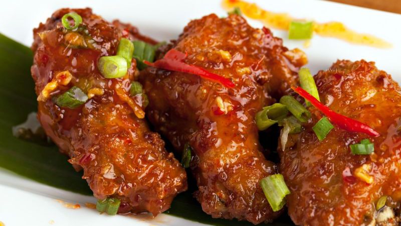 Skrzydełka faszerowane kaszą jaglaną z sosem słodko-ostrym