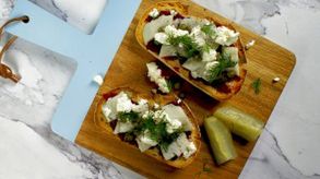 Przygotowanie: rolmopsy rozwijamy, kroimy w krótkie paski. Pieczywo opiekamy w piekarniku, aż do zarumienienia. Gotowe grzanki smarujemy ćwikłą i układamy na nich śledzia. Całość posypujemy kaparami, kruszoną fetą i doprawiamy do smaku. Dekorujemy koperkiem.