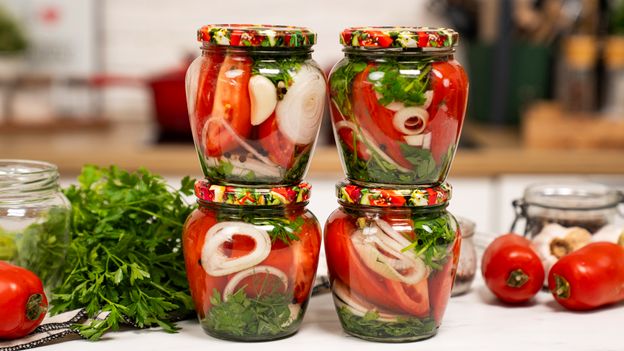 - Do przepisu świetnie sprawdzą się pomidory z odmiany Roma lub Luna. Są twarde i mięsiste, dzięki czemu masz pewność, że w trakcie przygotowania i przechowywania domowych przetworów nie rozpadną się na mniejsze kawałki. Wręcz przeciwnie po wyjęciu ze słoika nadal będą miały swój pierwotny kształt.