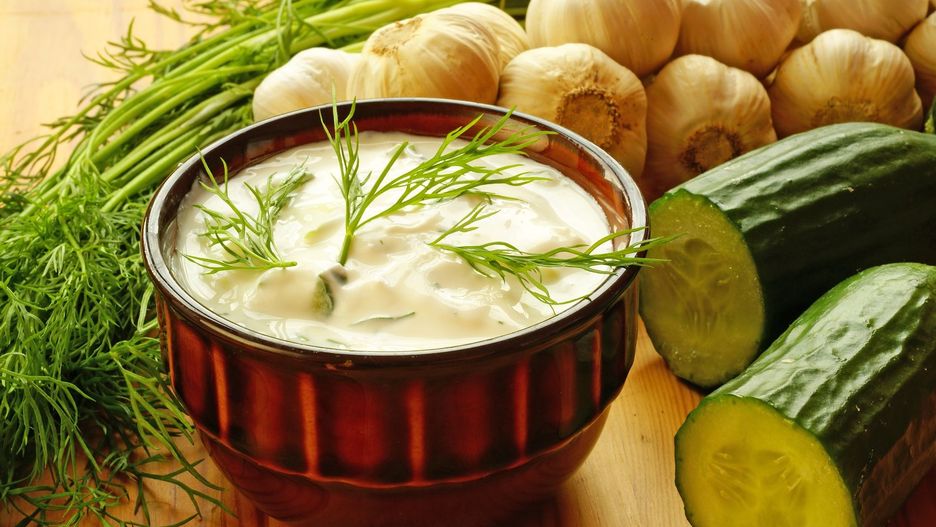 Składniki: Opakowanie jogurtu greckiego (600 g), duży lub dwa mniejsze świeże ogórki, 6 łyżek oliwy z oliwek, garść koperku, 2 ząbki czosnku, łyżeczka octu winnego, sól i pieprz do smaku, kilka listków mięty (opcjonalnie).