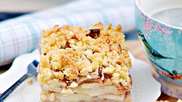 - Podpieczony spód posypać równomiernie bułką tartą. Na wierzchu ułożyć połowę jabłek i posypać je połową przypraw. Pozostałe jabłka zamieszać, aby dobrze połączyły się z miodem i przełożyć je do formy. Jabłka posypać pozostałymi przyprawami (można lekko zamieszać).