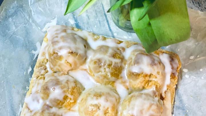 - Piec 4 5min. w 180 stopniach. Jeśli ciasto z góry za szybko się rumieni, można przykryć folią aluminiową. Po wystudzeniu polać lukrem.