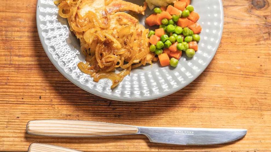 Sznycle z indyka z cebulką to propozycja Joli Caputy na rodzinny obiad. Tak przygotowane mięso wyjdzie miękkie i delikatne. Sznycle podajemy z ziemniaczanym puree i marchewką z groszkiem.