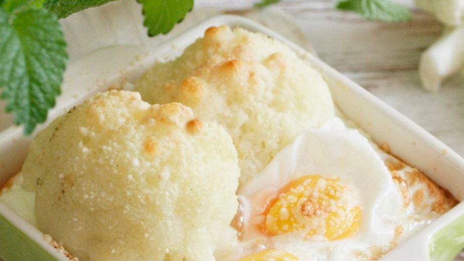 Błyskawiczna zapiekanka z jajkiem i kalafiorem. Możecie do niech wykorzystać czerstwe pieczywo. Zapiekankę najlepiej przygotowywać w pojedynczych foremkach, takich dla jednej osoby. Można wtedy podać ją bez przekładania na talerz. Przepis z bloga "Daylicooking"