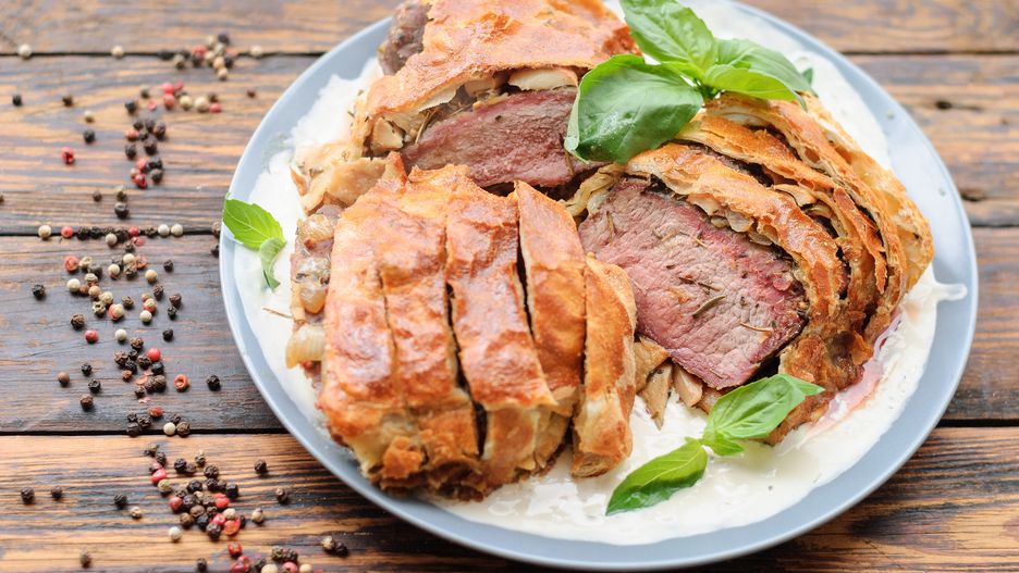 Do przyrządzenia potrawy możemy też wykorzystać ciasto francuskie. Jednak wtedy należy wcześniej upiec szynkę w piekarniku, a dopiero później zawinąć mięso w ciasto, posmarować je roztrzepanym jajkiem, posypać sezamem i jeszcze raz włożyć do piekarnika (200 st.) na około 20 minut.