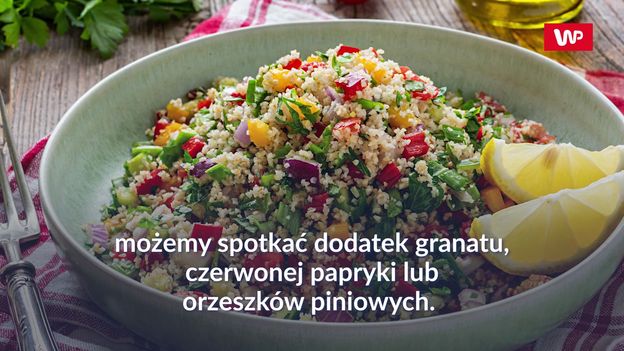 Tabbouleh to libańska sałatka na bazie kaszy bulgur z dodatkiem pomidorów, ogórków, szalotki, czosnku oraz czerwonej papryki. Smak sałatki podkręcany jest aromatem mięty, cytryny oraz natki pietruszki. Ilu Libańczyków, tyle wersji tej potrawy. W niektórych przepisach oprócz rozmaitych rodzajów kasz, możemy spotkać dodatek granatu, czerwonej papryki lub orzeszków piniowych.