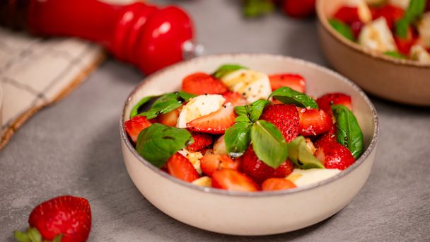 Lekka, orzeźwiająca i idealna na lato – sałatka caprese z truskawkami to świeża wariacja na temat włoskiego klasyka. Świetnie sprawdzi się jako przystawka, lekki lunch lub elegancki dodatek do grilla. Smak to zasługa octu, ale... balsamicznego. Jak ją zrobić? Na talerzu układasz 200 g pokrojonych truskawek, porwaną kulę mozzarelli w zalewie i kilka świeżych listków bazylii. Całość skrapiasz octem balsamicznym, doprawiasz solą i pieprzem – gotowe w 5 minut!