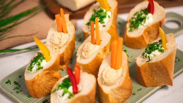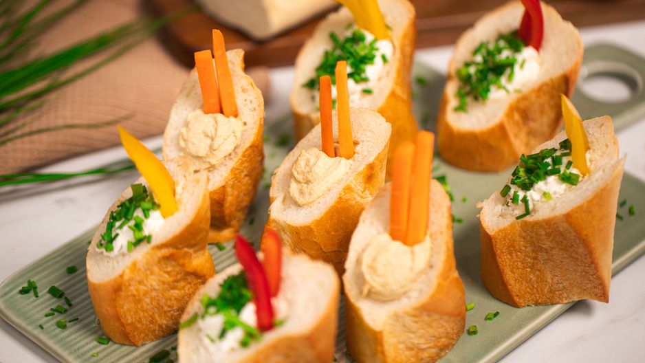 Szukasz pomysłu na szybkie i różnorodne śniadanie lub kolację? Ta pasta kanapkowa w trzech smakach to idealne rozwiązanie! Z jednej bagietki i kilku składników przygotujesz trzy wersje – z hummusem i marchewką, klasyczną z czerwoną papryką i serkiem śmietankowym oraz ziołową z żółtą papryką i szczypiorkiem. Kolorowo, smacznie i bez nudy!