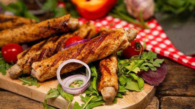 Roladki ze schabu faszerowane białymi kiełbaskami to pomysł na aromatyczne, soczyste danie, które świetnie sprawdzi się na grilla lub rodzinny obiad. Schab wieprzowy marynowany w przyprawie grillowej (najlepiej z dobrym składem lub domowej wersji) i oleju przez minimum 2 godziny nabiera intensywnego smaku, a farsz z białych kiełbasek dodaje mu wyrazistości. Przepis jest prosty, a efekt robi wrażenie - roladki są kruche, soczyste i pełne aromatu. Idealna propozycja na sezon grillowy i nie tylko!