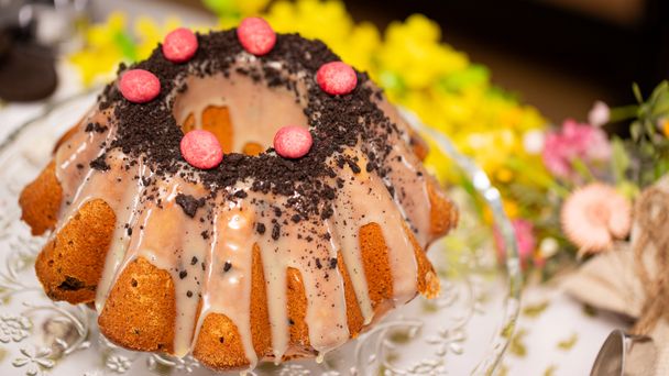 Ucierana babka wielkanocna to prosty patent, jak w te święta zaskoczyć domowników i gości przy stole. Wystarczy, że najpierw utrzesz miękkie masło z cukrem pudrem, a potem miksując połączysz stopniowo z jajkami. Następnie dodasz mąkę, proszek do pieczenia i mleko, całość powinno być gładkie, dość gęste. Wrzuć pokruszone ciasteczka i przełóż do natłuszczonej i obsypanej bułką tartą foremki - piecz ok. 55 minut w 180 stopniach C. do tzw. suchego patyczka. Uderokuj polewą z białej czekolady i ciasteczkami.