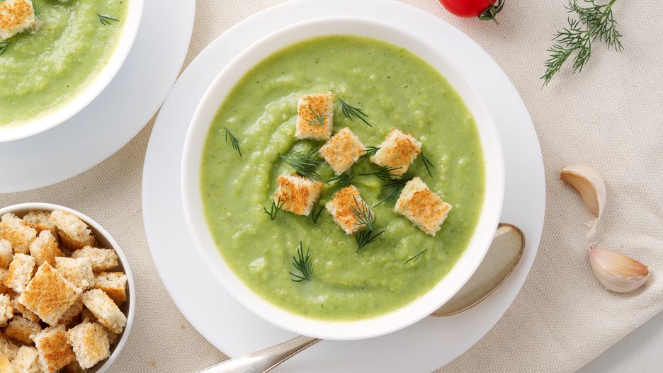 Delikatna kremowa zupa z cukinii zachwyci wszystkich. Cukinia ma delikatny smak, dlatego warto go przełamać czosnkiem i ziołami. Zupę podajemy z paluszkami surimi i wiórkami mozzarelli.