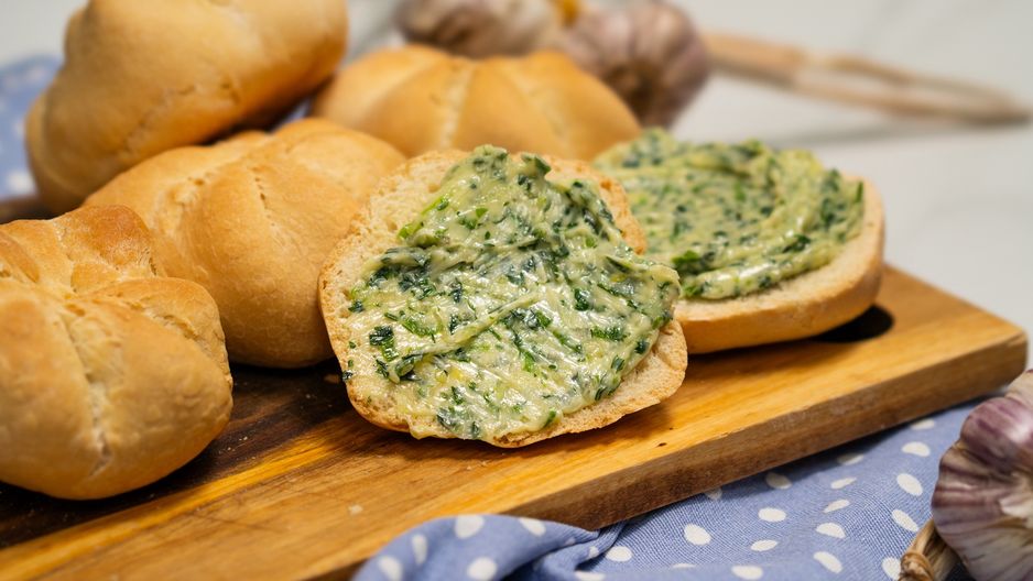 - Chrupiące kajzerki serwuj z masłem ziołowym domowej roboty.