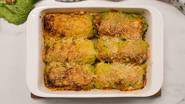 Poznaj wyjątkowy przepis na zapiekane liście kapusty włoskiej z mięsem mielonym z indyka i serem pecorino – to danie, które łączy lekkość z intensywnym smakiem. Kapustę włoską gotujemy przez około 5 minut, a następnie wypełniamy ją aromatycznym farszem z cebuli, marchewki, czosnku, dymki i przypraw. Całość wzbogacona jest serem pecorino romano oraz parmezanem i zapieczona w piekarniku przez 30 minut w temperaturze 170°C. Danie przygotujesz w foremce o wymiarach 24 x 19 cm. To świetna propozycja na zdrowy obiad, który zachwyci domowników i gości. Idealna alternatywa dla klasycznych gołąbków!