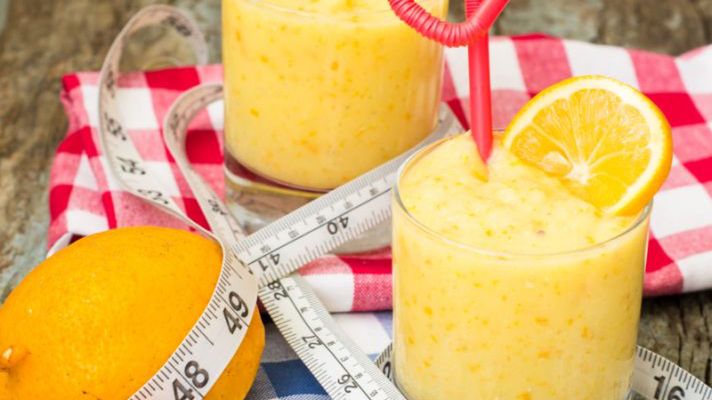Żółte smoothie z mango i pomarańczy